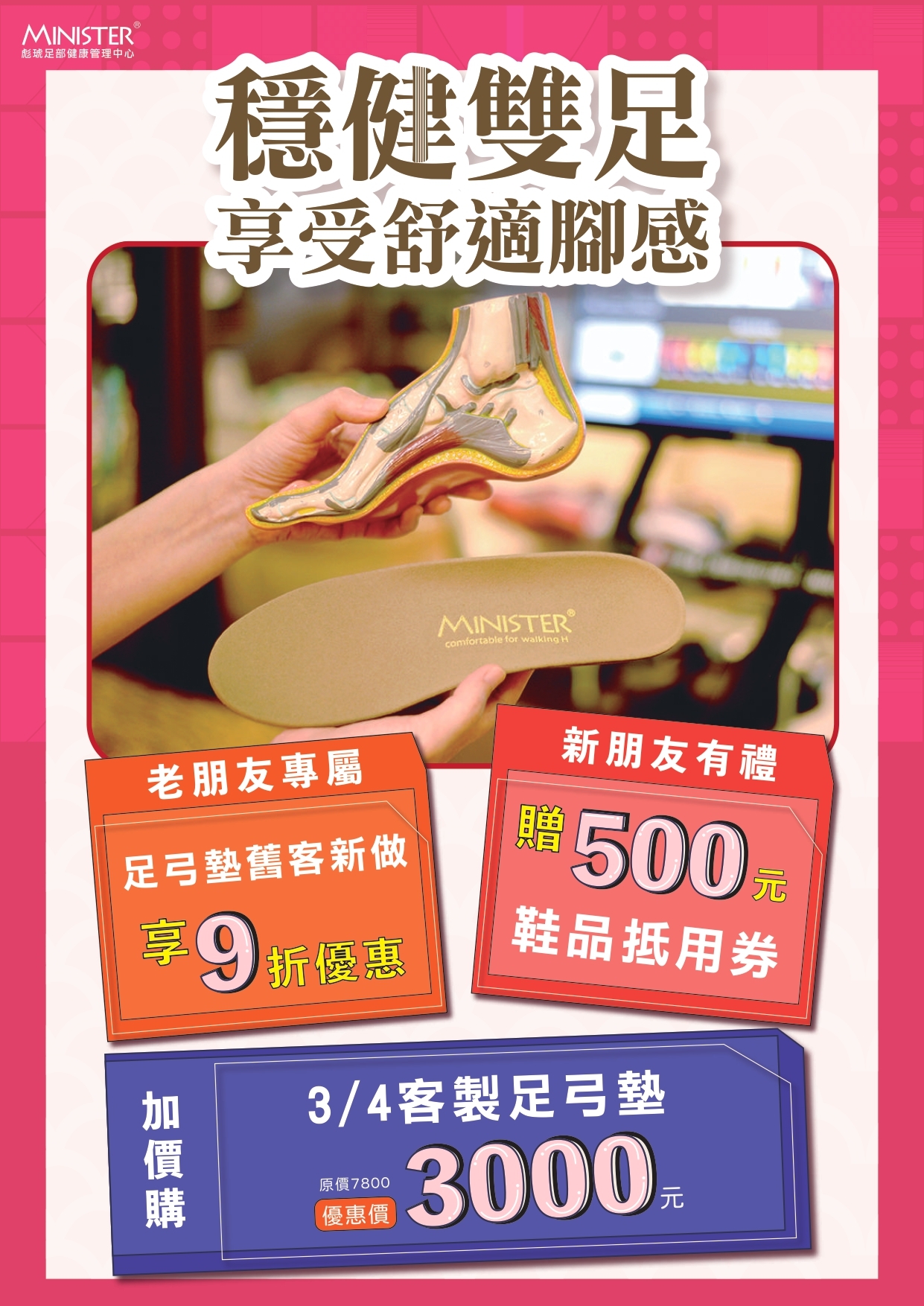 加價購 ▶︎3/4客製足弓墊 優惠價3000元 (原價7800元)