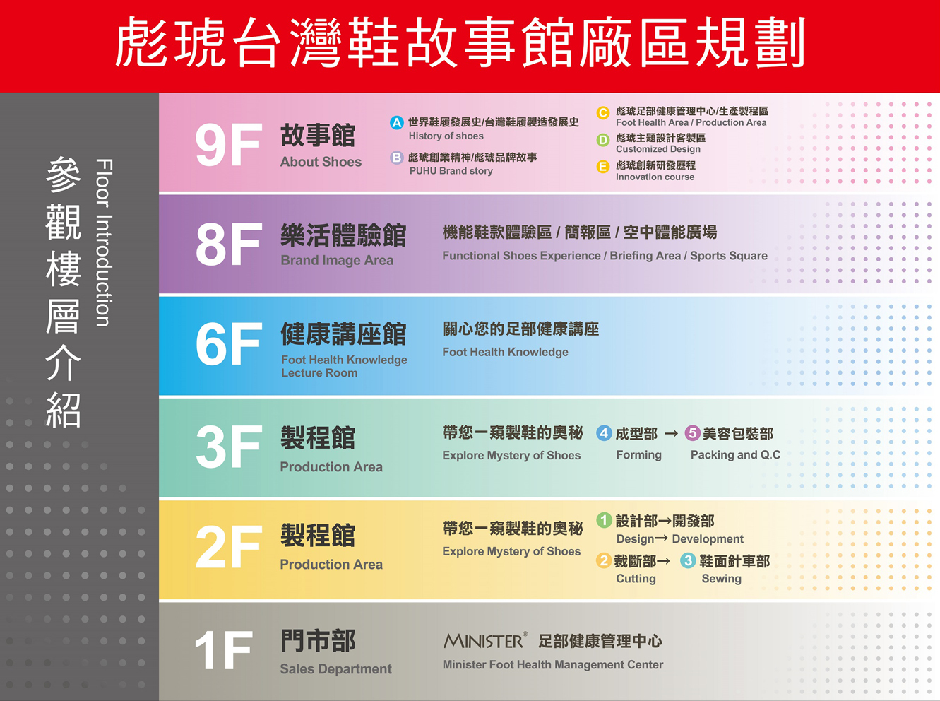 跟著我們的腳步,走入時光隧道,藉由展演影像及導覽解說,讓您了解鞋子的歷史演進、足與健康的關係,還有專屬台灣鞋的點滴故事!
