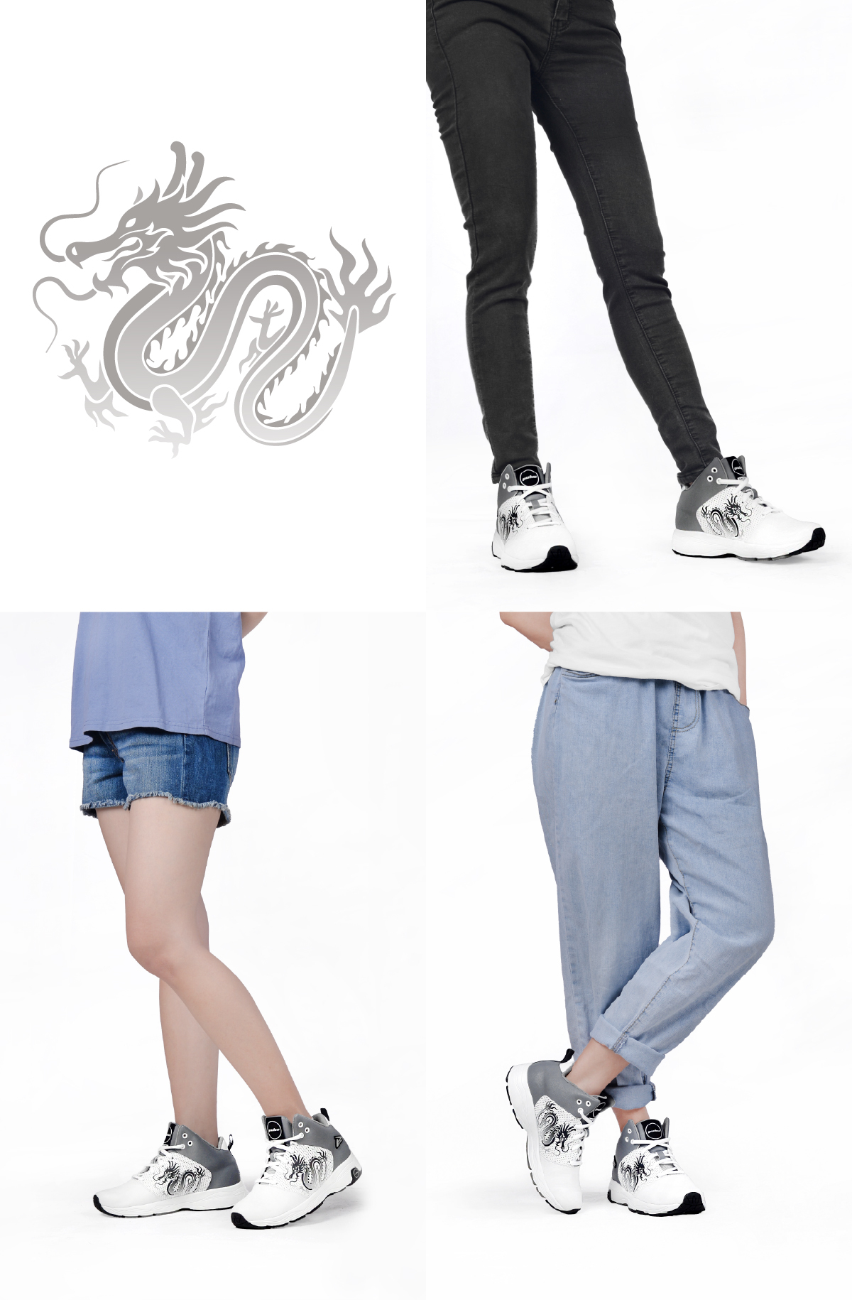 2024 Year of the Dragon 龍年主題設計高筒休閒鞋 – 男款白灰
