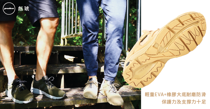輕量EVA+橡膠大底耐磨防滑,適合行走於維護良好的步道環境。鞋墊及大底厚實彈性,保護力及支撐力十足。