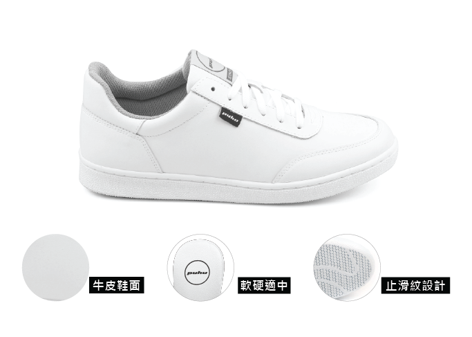 牛皮鞋面,簡約質感,透氣舒適;乳膠鞋墊,軟硬適中彈性佳;橡膠鞋底止滑紋設計,耐穿耐磨又止滑。是你每日的穿搭首選。