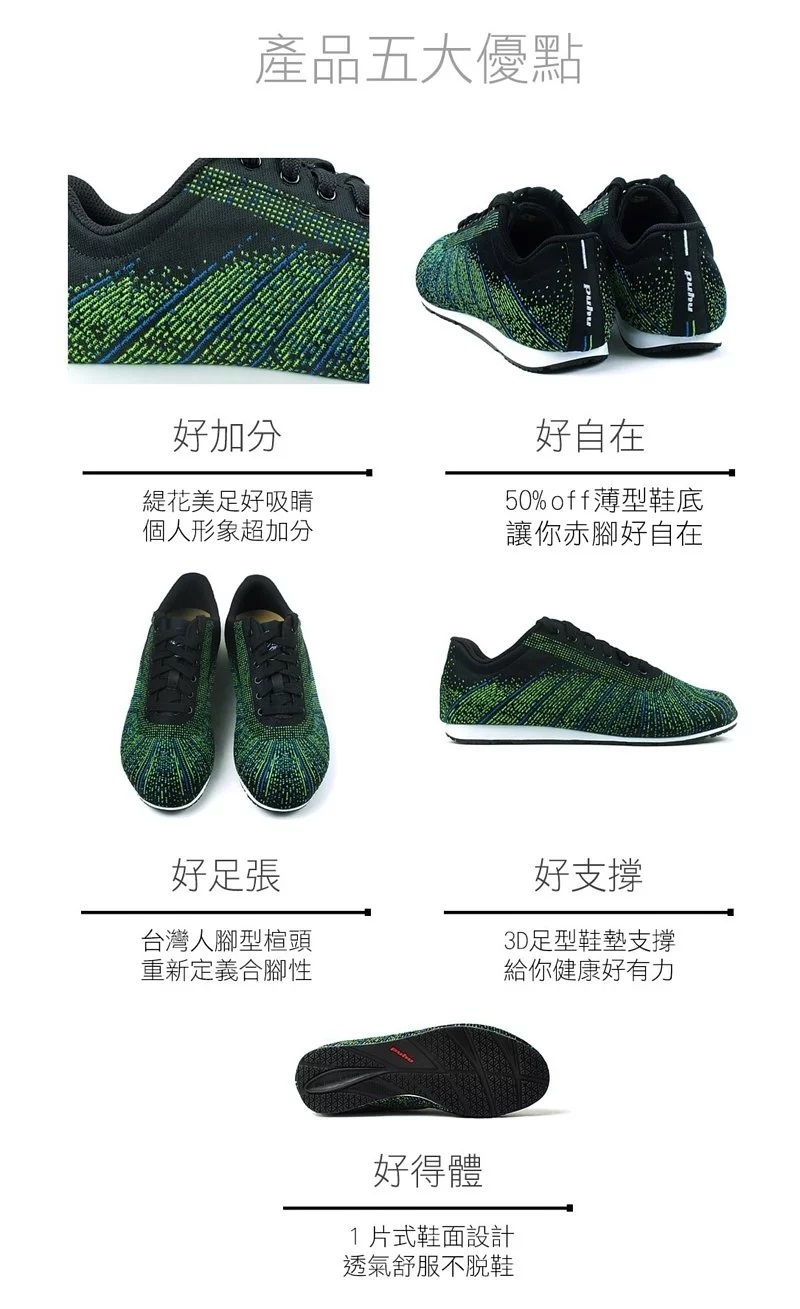 l台灣腳型專屬楦頭:開發台灣人之專屬寬楦頭 ,更貼近國人之腳型,給予極佳的合腳穿著感,舒適好走。