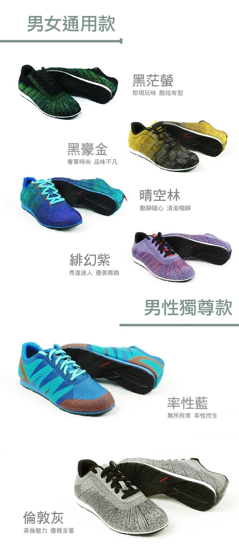 l環保製程:創新製程,採用『無膠成型法』來製作鞋子 , 鞋面與大底不使用膠水接著,既環保也不用擔心鞋子脫膠的問題。