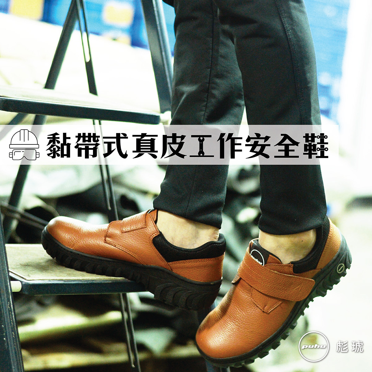 黏帶式真皮工作安全鞋 - 男款淺咖