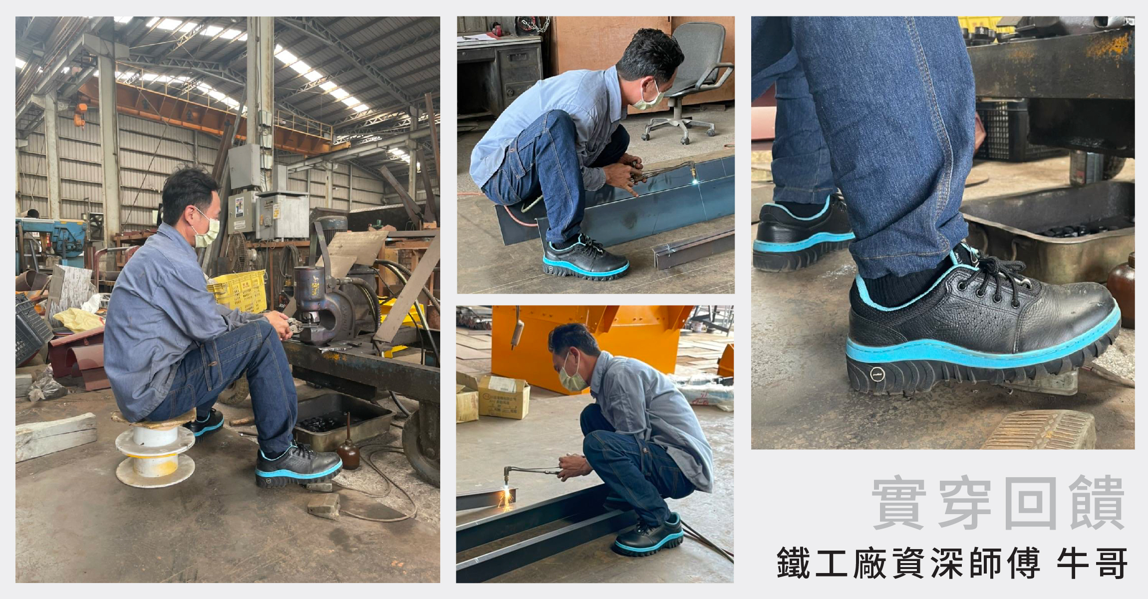 「因為工作需要穿安全鞋,一開始只是想說有雙符合規定的鞋可以穿就好,沒有特別在意好不好穿,但上班一整天後都會感到腰痠腿痠,後來在朋友的推薦,買了彪琥的安全鞋,除了樣式看起來比一般黑色的安全鞋好看之外,也真的覺得很好穿!」——鐵工廠資深師傅 牛哥