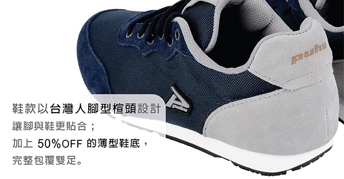 鞋款以台灣人腳型楦頭設計,讓腳與鞋更貼合;透氣舒適的鞋面布料,加上50% OFF的薄型鞋底,完整包覆雙足,模擬裸足的舒適感受,行走時更輕鬆自在。