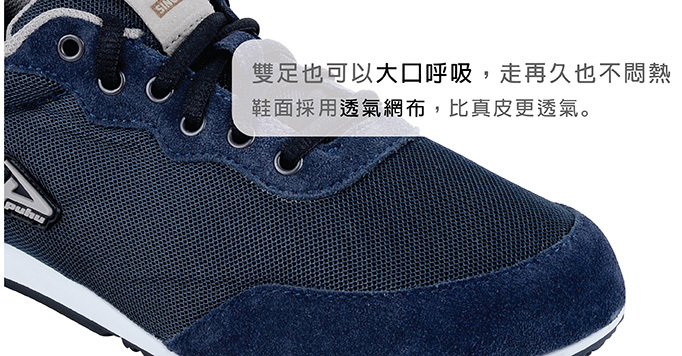 鞋面採用透氣網布,比真皮更透氣。包覆雙足,走路及散步的過程中,鞋面布料能夠服貼雙腳弧度,配合腳掌前行動作,體驗彈性、透氣、靈活的舒適感