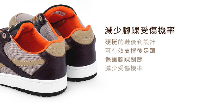硬挺的鞋後套設計可有效支撐後足跟,保護腳踝關節,減少受傷機率!