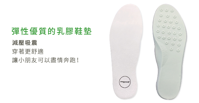 以台灣人腳型楦頭設計,鞋款包覆,貼合雙腳。透氣舒適的鞋面材料、吸汗乾爽的網布內裡,加上耐磨止滑的運動型橡膠鞋底,雙腳可以靈活行動!