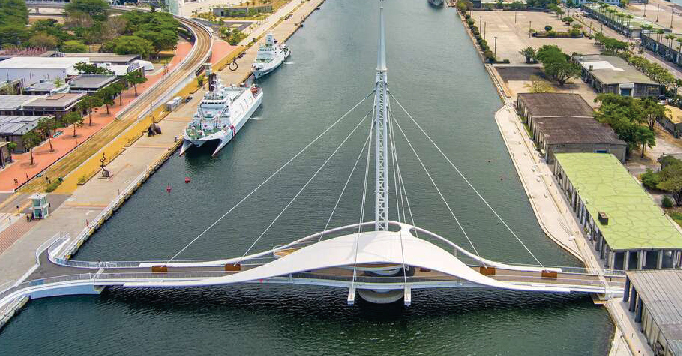「大港橋」位於駁二藝術特區碼頭旁,是全臺首座水平旋轉景觀橋樑,也是亞洲最長的跨港旋轉橋,海風徐徐,白天和煦陽光、傍晚溫暖夕陽,晚間橋身燈光點綴,不同時刻都是打卡景色。串連駁二藝術特區與棧貳庫2處熱門景點,是目前最新潮的旅遊路線。