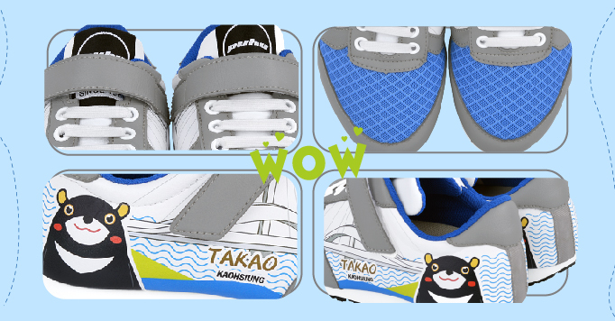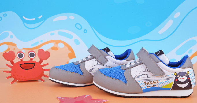 以高雄熊為主題設計,搭配高雄景點及人文風情為輔,童鞋採用活潑的配色及選用PUHU健走鞋,環保製程不脫膠,止滑好穿且舒適,一起全家親子出遊,健康好生活。