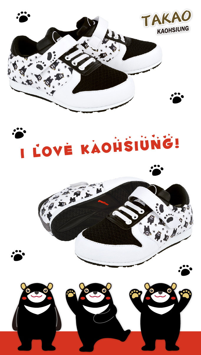 以高雄熊為主題設計,搭配高雄景點及人文風情為輔,童鞋採用活潑的配色及選用PUHU健走鞋,環保製程不脫膠,止滑好穿且舒適,一起全家親子出遊,健康好生活。