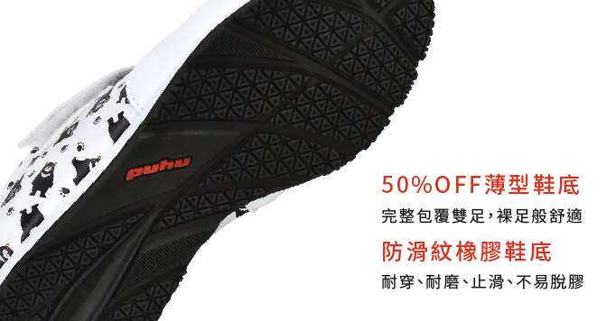 以高雄熊為主題設計,童鞋採用活潑的配色及選用PUHU健走鞋版型,鞋底止滑好穿且舒適,一起全家親子出遊,健康好生活。
