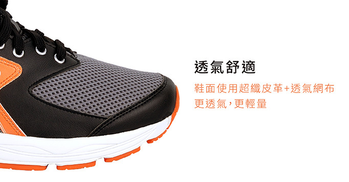 鞋面使用超纖皮革+透氣網布,更透氣,更輕量。耐彎折度,耐磨度高,適於多數日常情境及用途,率性穿搭!