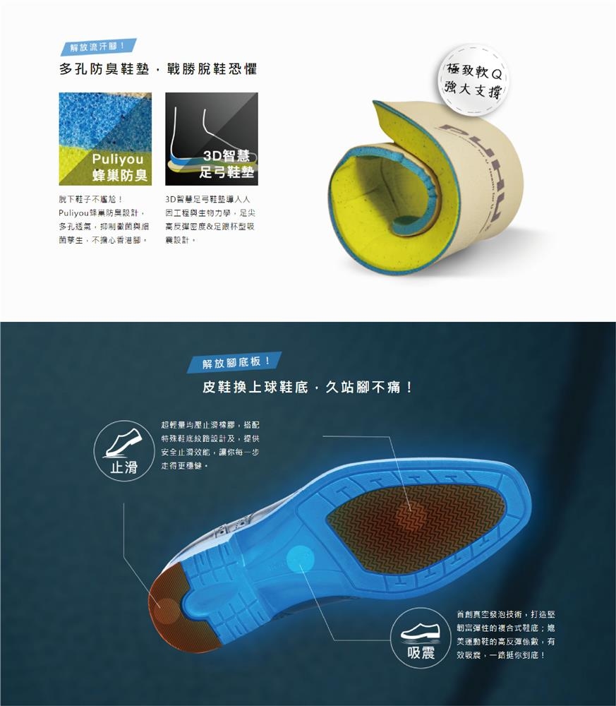 *3D腳型足弓支撐鞋墊,提供「反彈、吸震、均壓、平衡」的效果