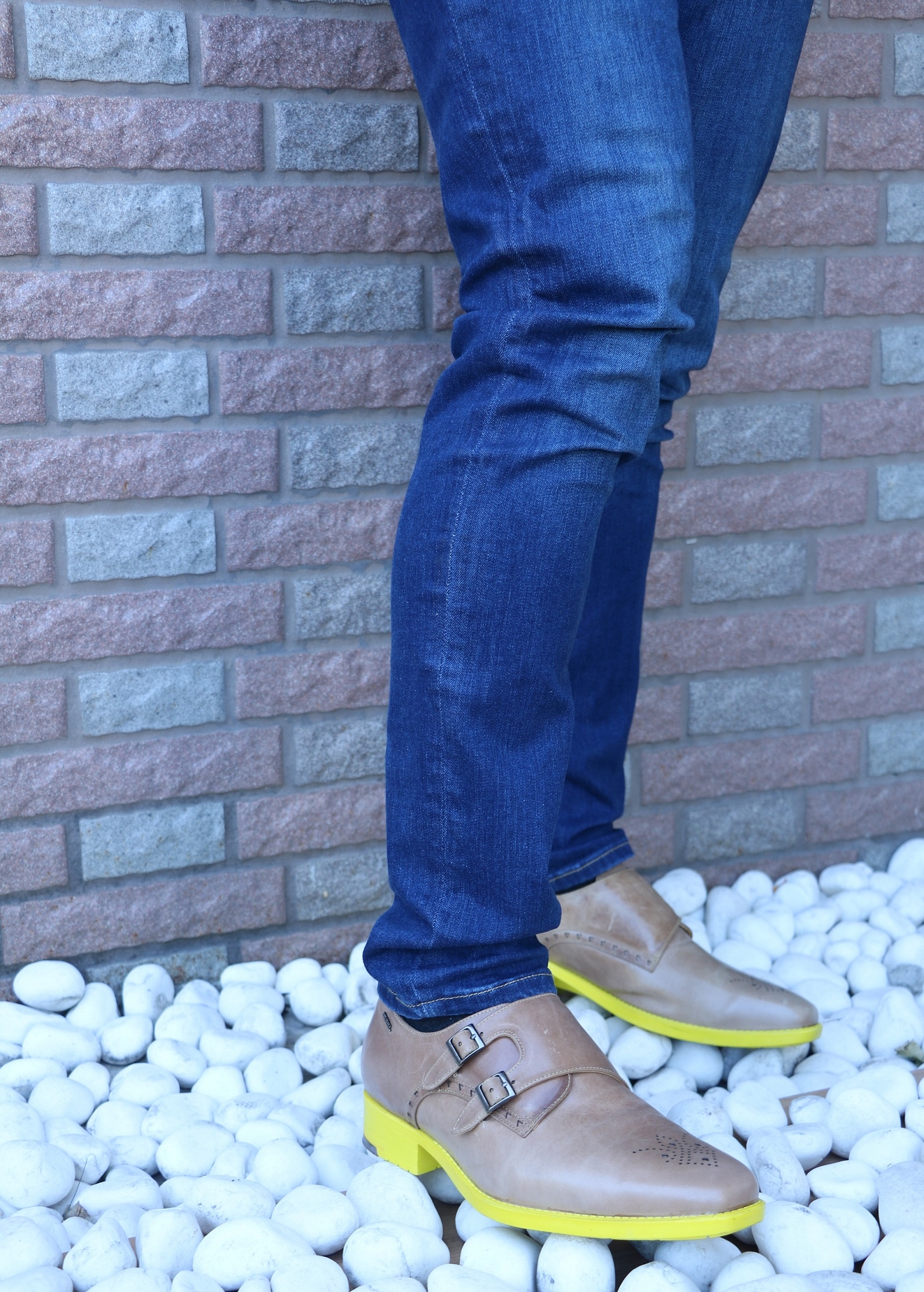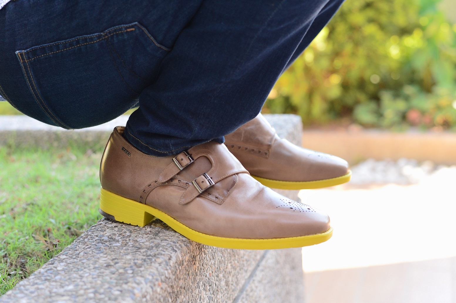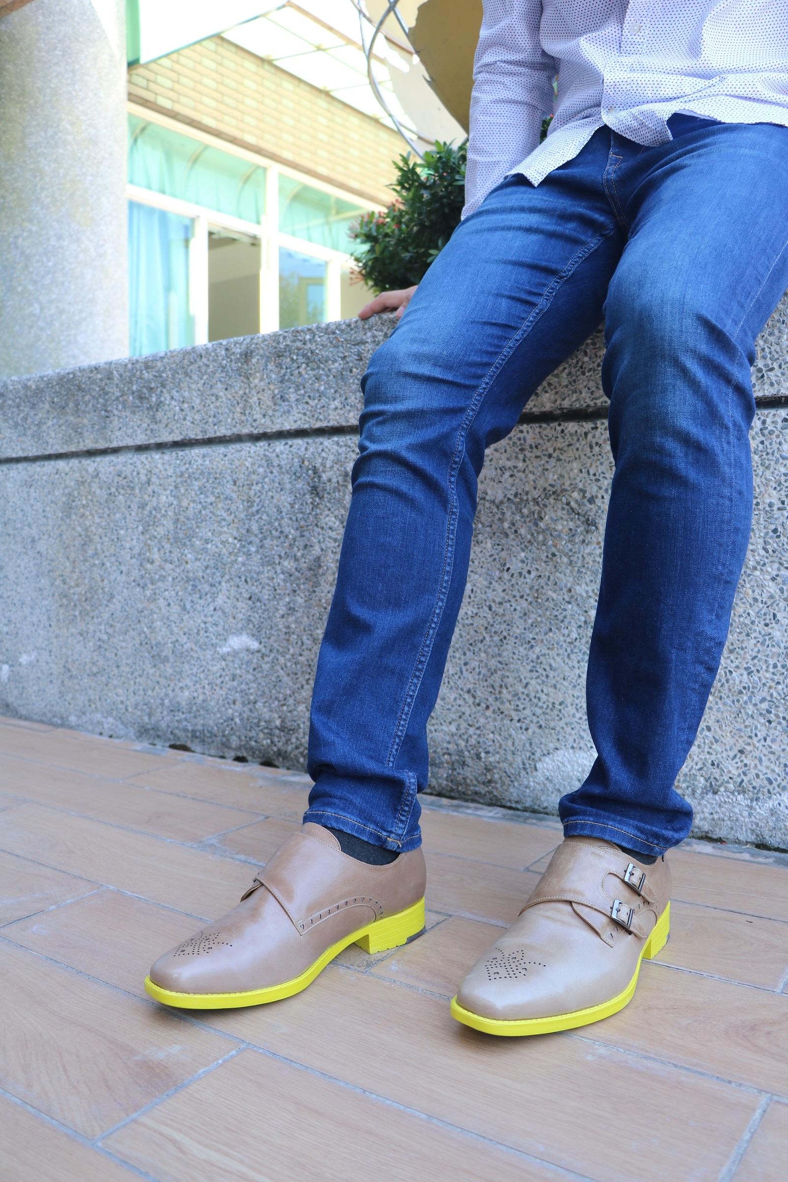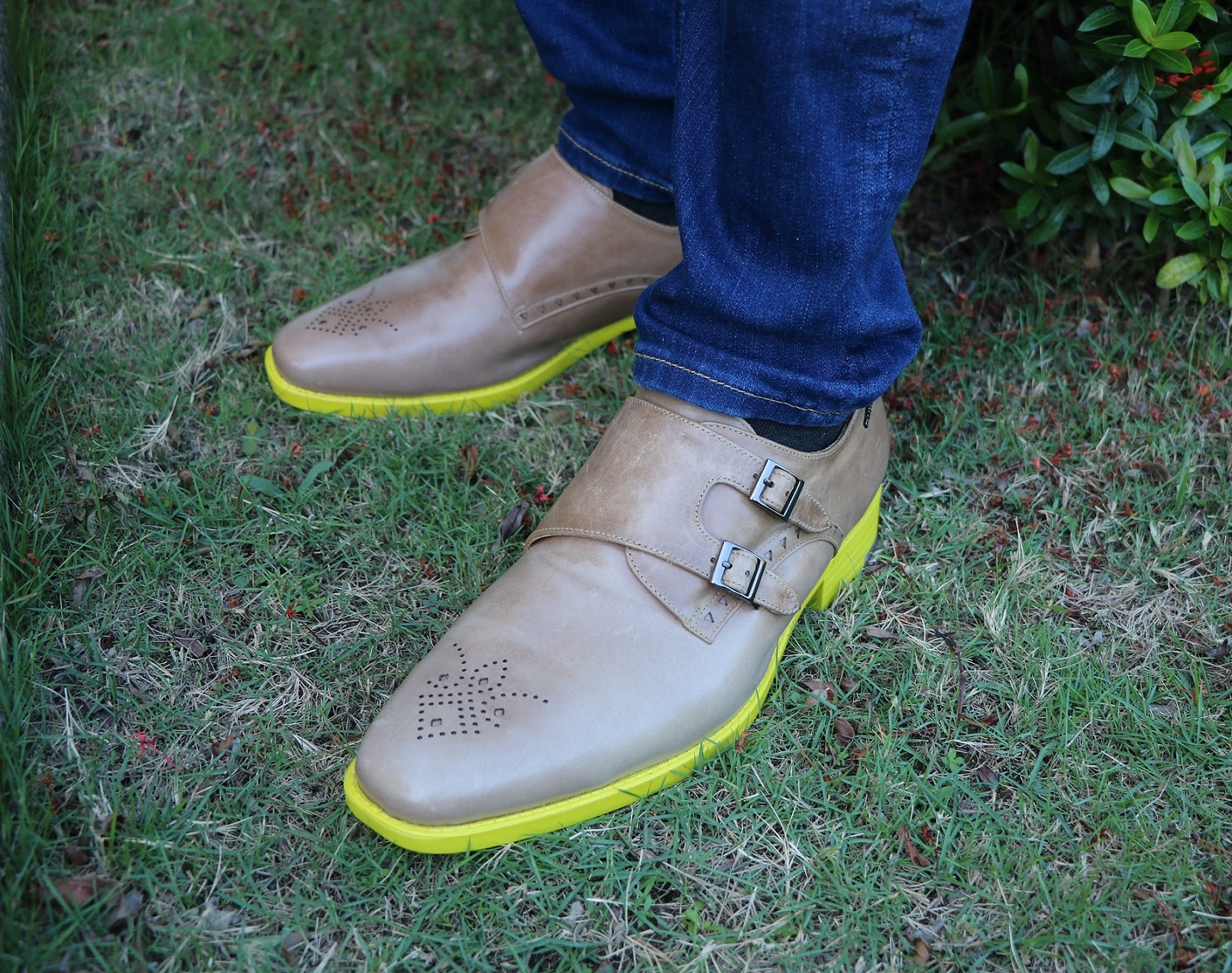 手工全牛皮雙扣環輕量紳仕皮鞋-亞麻