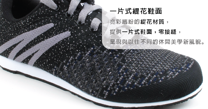 *以零接縫的一片式緹花鞋面做設計,呈現不同的休閒美學新風貌