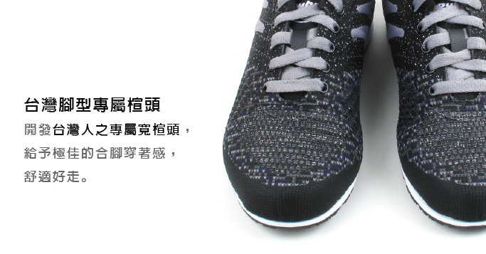 開發台灣人之專屬寬楦頭 ,更貼近國人之腳型,給予極佳的合腳穿著感,舒適好走。