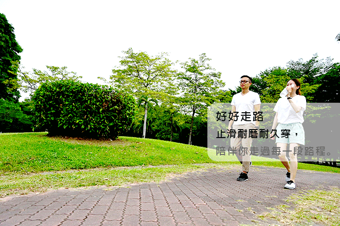 走路及散步的過程中,腳跟會先接觸到地面,之後再利用前腳掌推進,而腳掌會明顯彎曲,鞋面布料能夠服貼雙腳弧度,才能完美配合腳掌的動作,給予彈性、透氣、靈活、舒適的體驗。