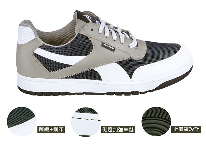 超纖皮革+網布鞋面,簡約質感,透氣舒適;側邊加強車縫,不易脫膠,增加鞋子牢固性;橡膠鞋底止滑紋設計,耐穿耐磨又止滑。是你每日的穿搭首選。