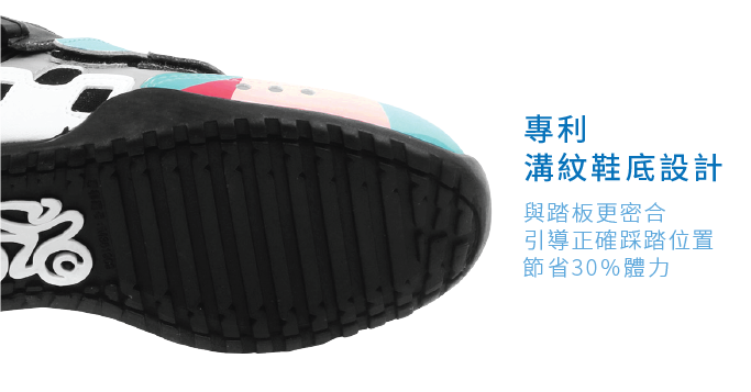 專利溝紋鞋底設計,鞋底與單車踏板緊密貼合