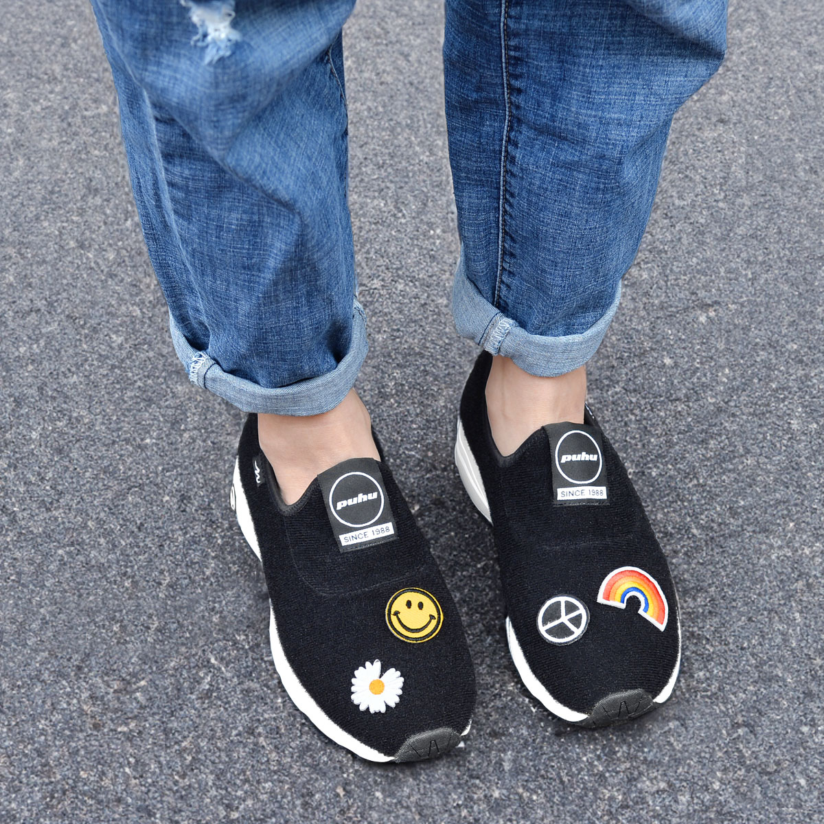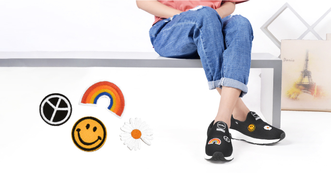 這一雙拼貼魔鬼氈休閒鞋,有著運動休閒鞋的核心,其鞋面是個自由的創作空間!魔鬼氈刺繡布章,成為每個人可以將個性、夢想和創意融入在踏出的每一步足跡上。