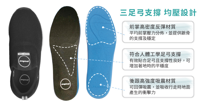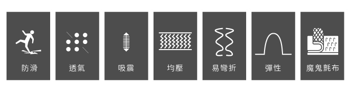 提供前所未有的支撐性及舒適性,增加行走站立時的舒適穩定度,並有效減少足部壓力。