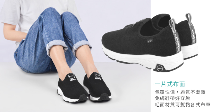 鞋面採用一體式魔鬼氈毛面包覆製作,不僅透氣,包覆性更佳,免綁鞋帶好穿脫,懶人穿鞋救星。
