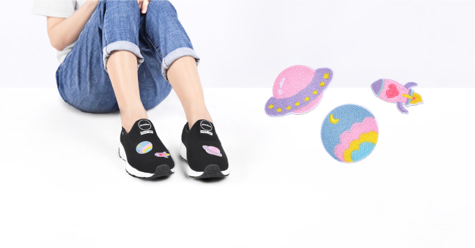 太空人、繽紛星球、彩虹小物三款高質感魔鬼氈刺繡布章,隨心所欲到處貼,無限變換個人穿搭風采。