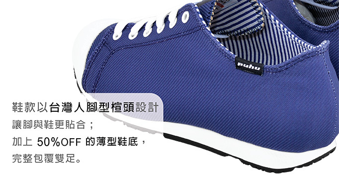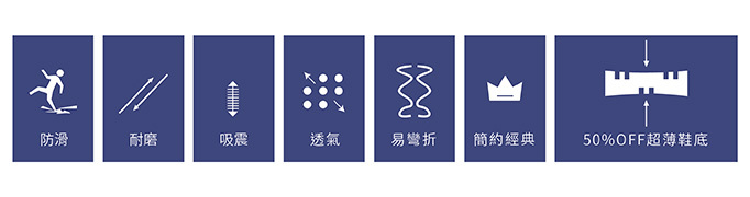 鞋款以台灣人腳型楦頭設計,讓腳與鞋更貼合;透氣舒適的鞋面布料,加上50% OFF的薄型鞋底,完整包覆雙足,模擬裸足的舒適感受,行走時更輕鬆自在。穿上鞋子出門一整天都有好心情!