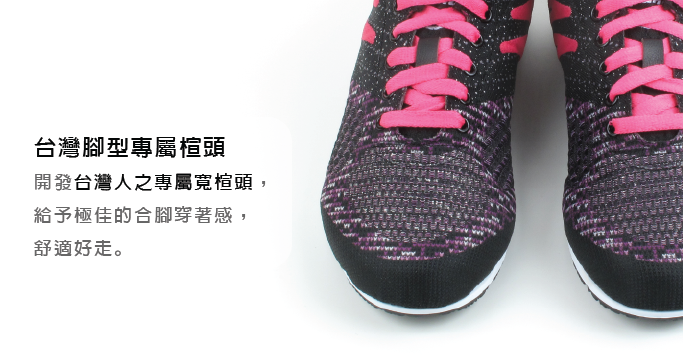 開發台灣人之專屬寬楦頭 ,更貼近國人之腳型,給予極佳的合腳穿著感,舒適好走。