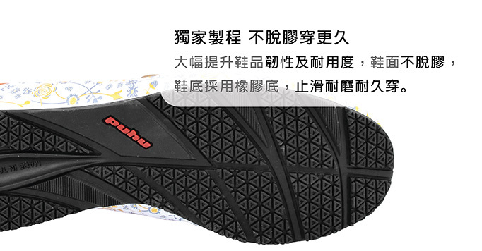 彪琥獨家創新製程,大幅提升鞋品韌性及耐用度,鞋面不脫膠鞋底採用橡膠底止滑耐磨耐久穿,一雙可以穿很久!